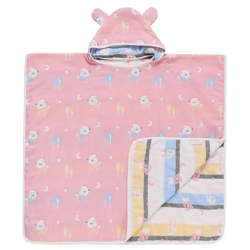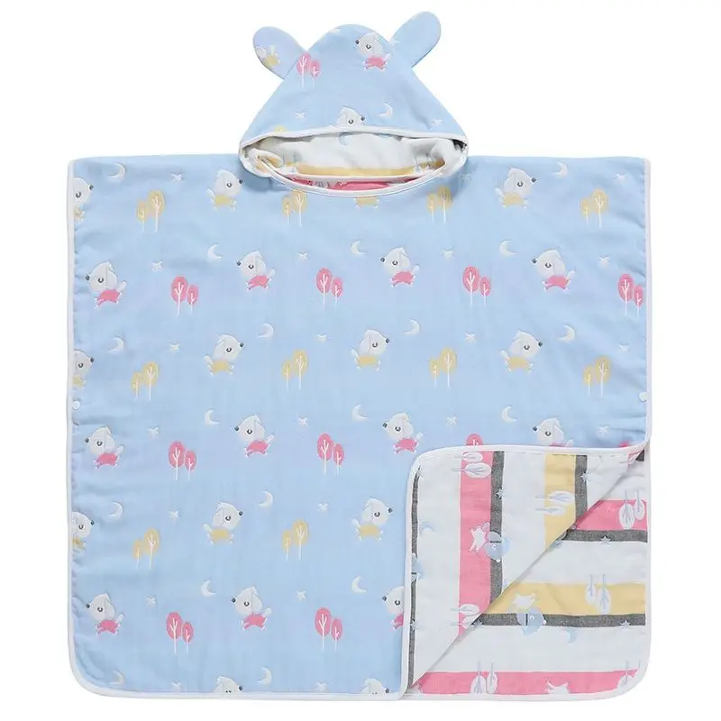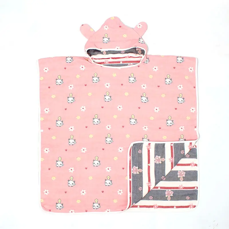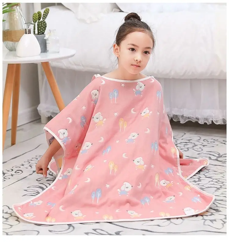 Pure Cotton Gauze Hooded Bath Towel Baby Cloak Cartoon Style Soft Absorbent Breathable Bathrobe Medium Large Children Nightgown